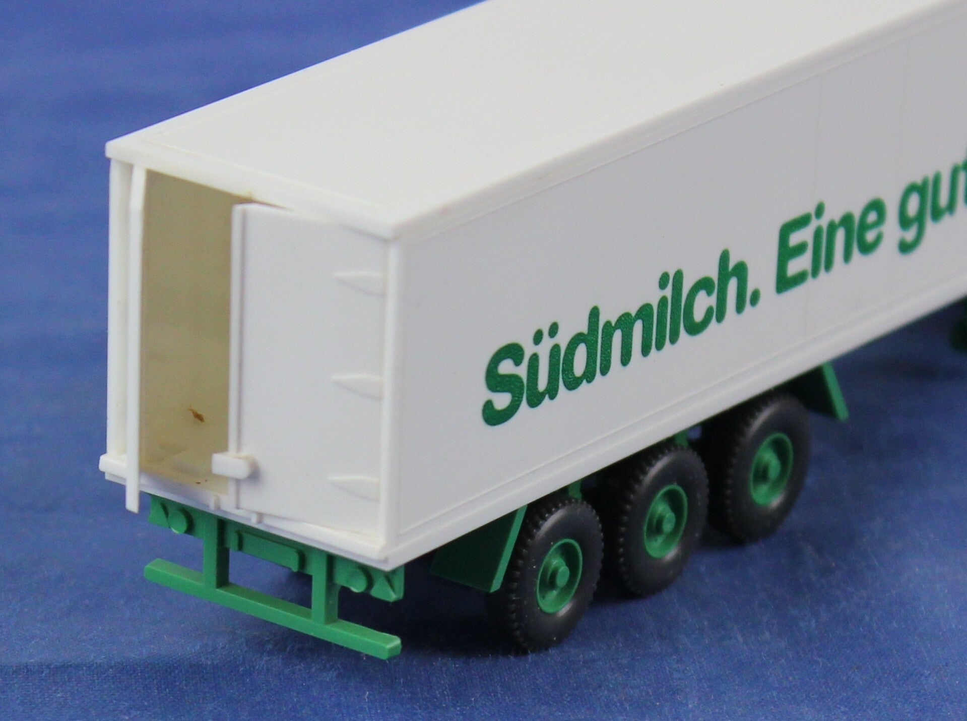 Drie-assige trailer met opschrift Südmilch. Eine gute Idee + logo.