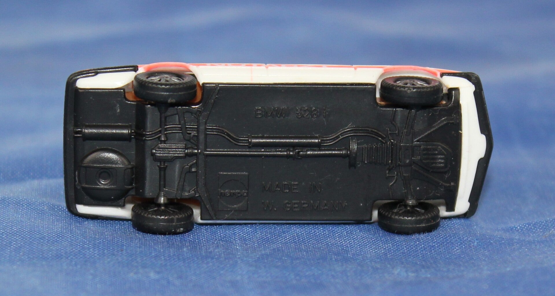 Wit, zwarte onderkant, bumpers en grille, oranje belijning.