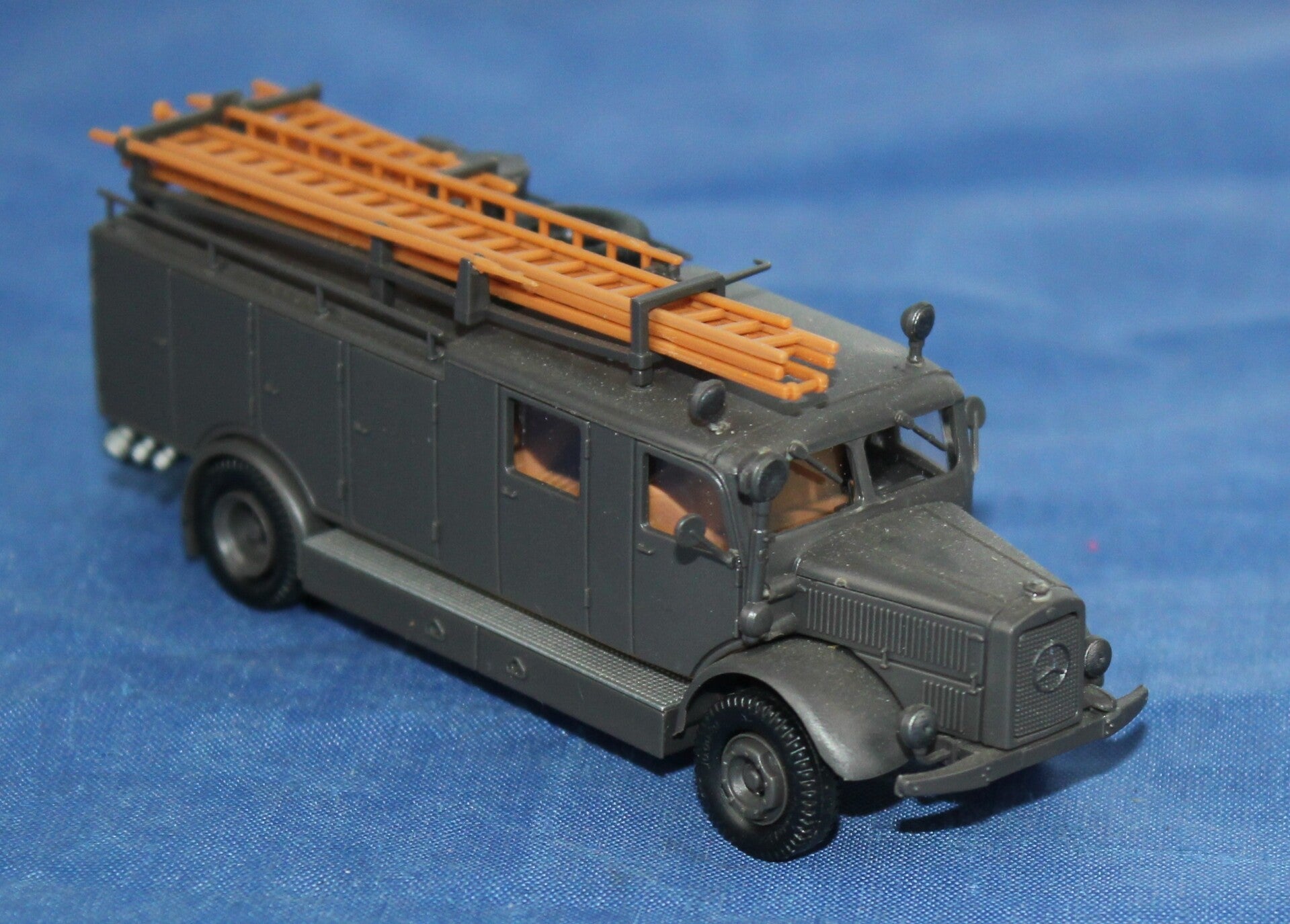Gedetailleerde legergroene brandweerwagen.