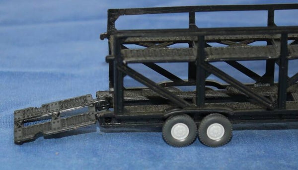 Zwarte auto transport trailer.