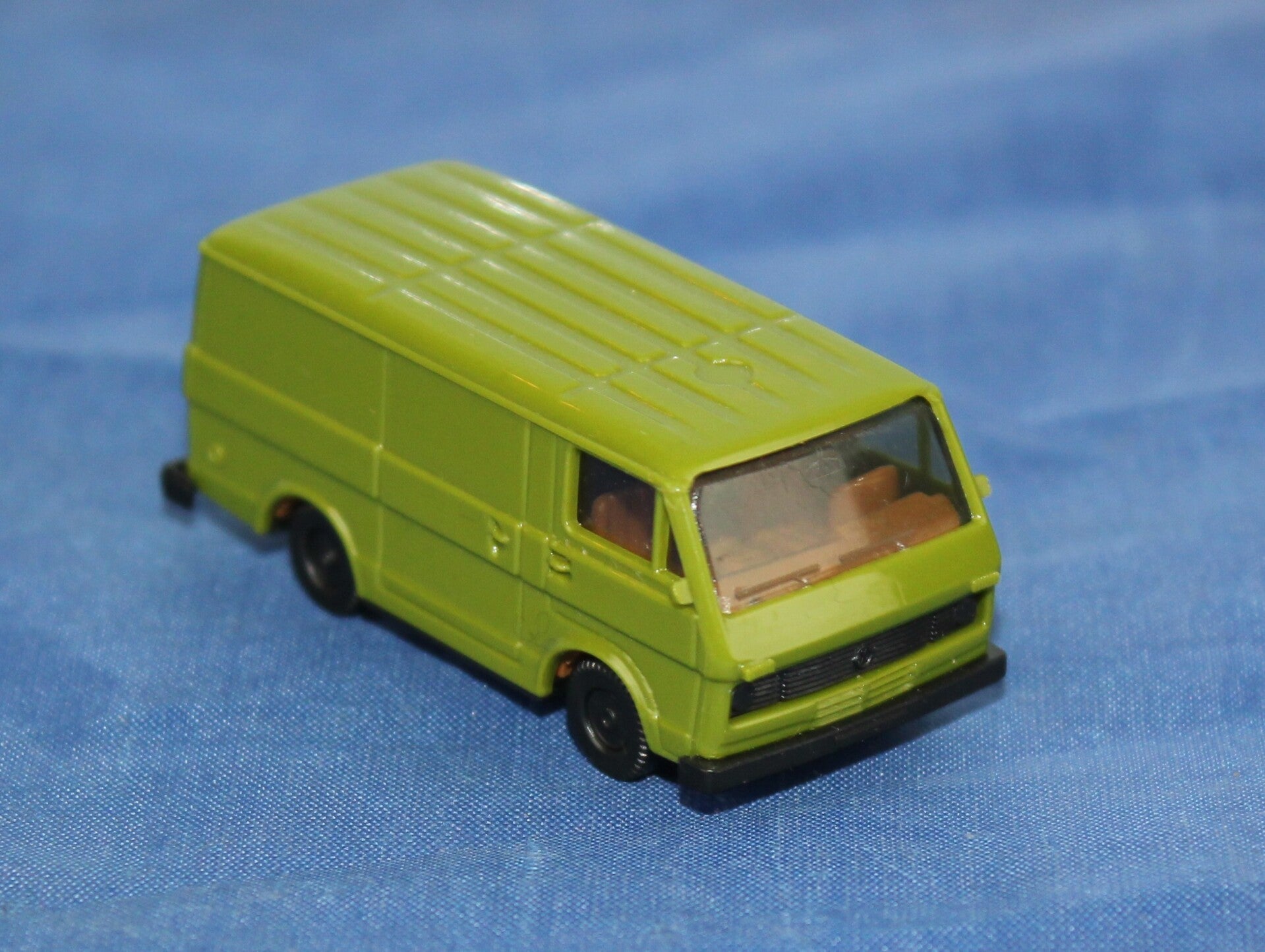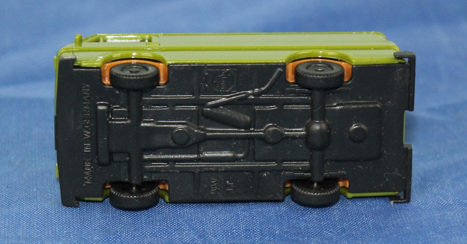 Lichtgroen, zwarte onderkant, buffers en grille.