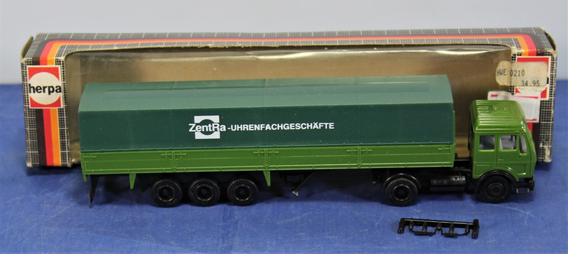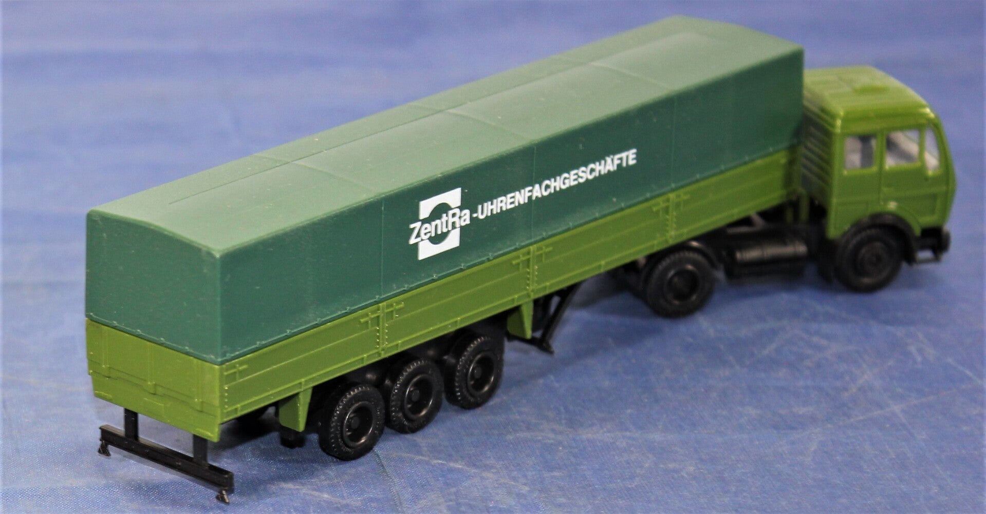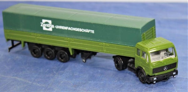 Lichtgroene cabine en bak, zwarte frames.Huif is donkergroen met opschrift ZentRa.Compleet met accessoires.In goede staat.In originele verpakking.