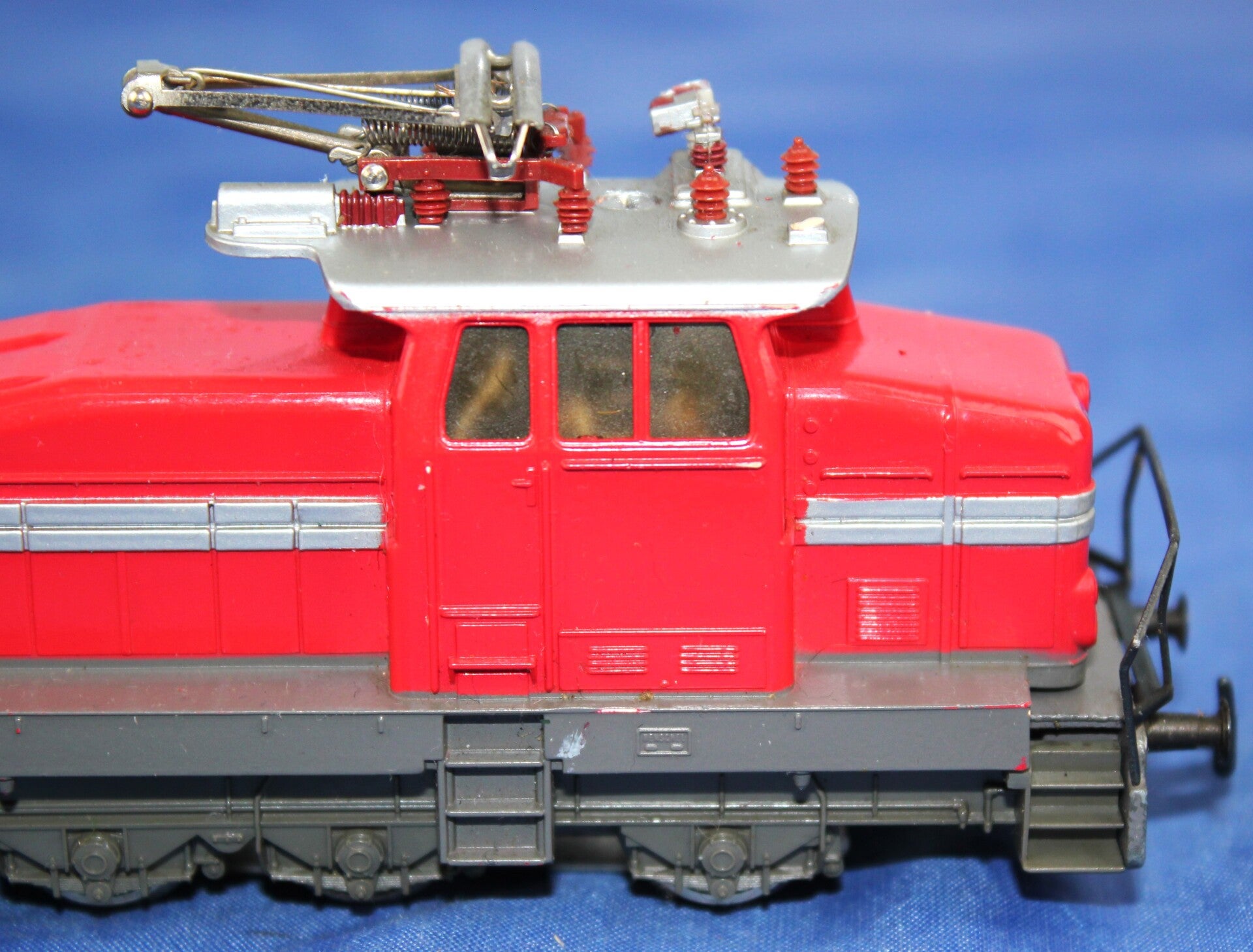 Rood/ grijze loc, zilverkleurige sierlijn en dak.