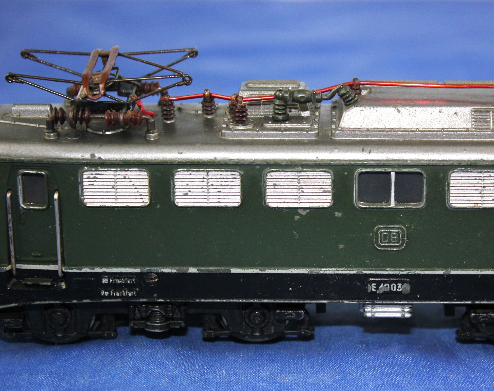Pantografen met bruine isolatoren.