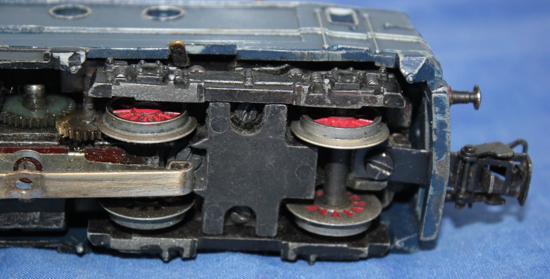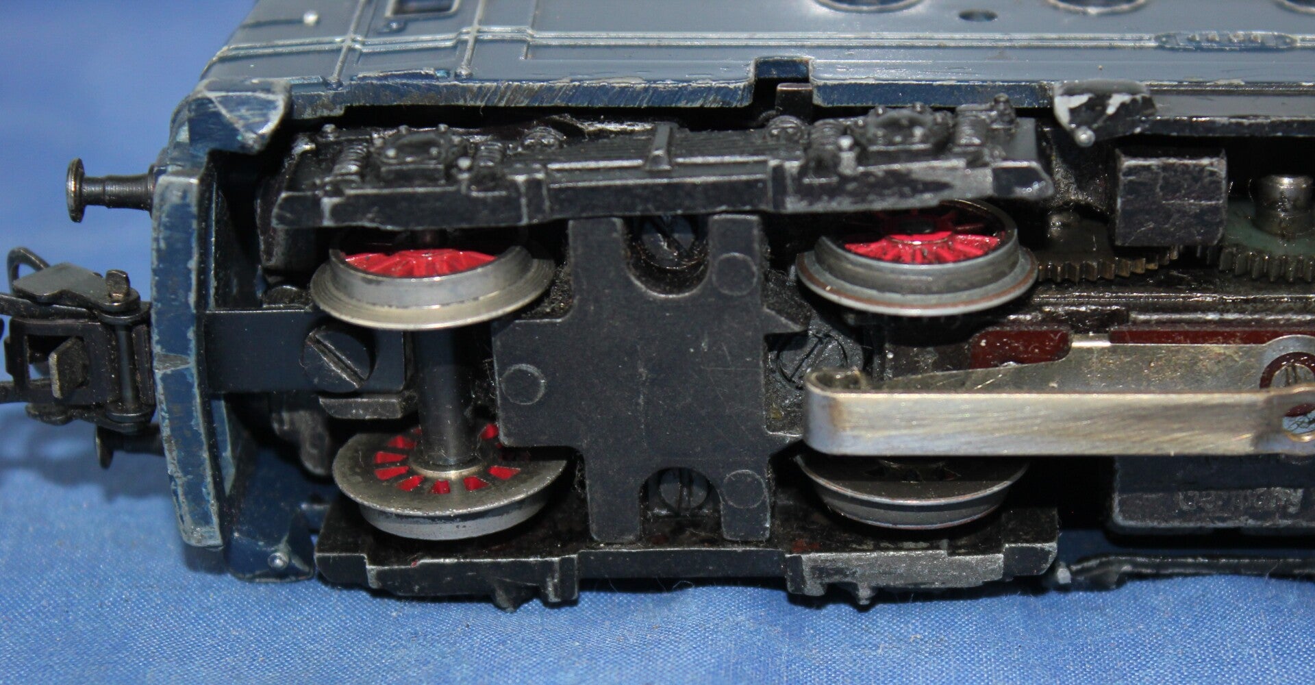 Twee assen aangedreven door in het midden van de loc geplaatste motor; 2 wielen met antislip banden.