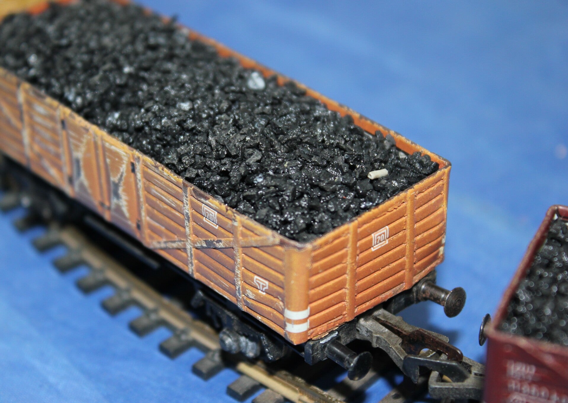 -1205 Zes open goederenwagen, beladen met ‘echte’ kolen.