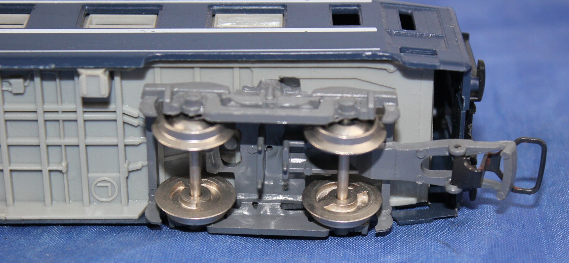 Grijze draaistellen met geïsoleerde wielen van metaal.