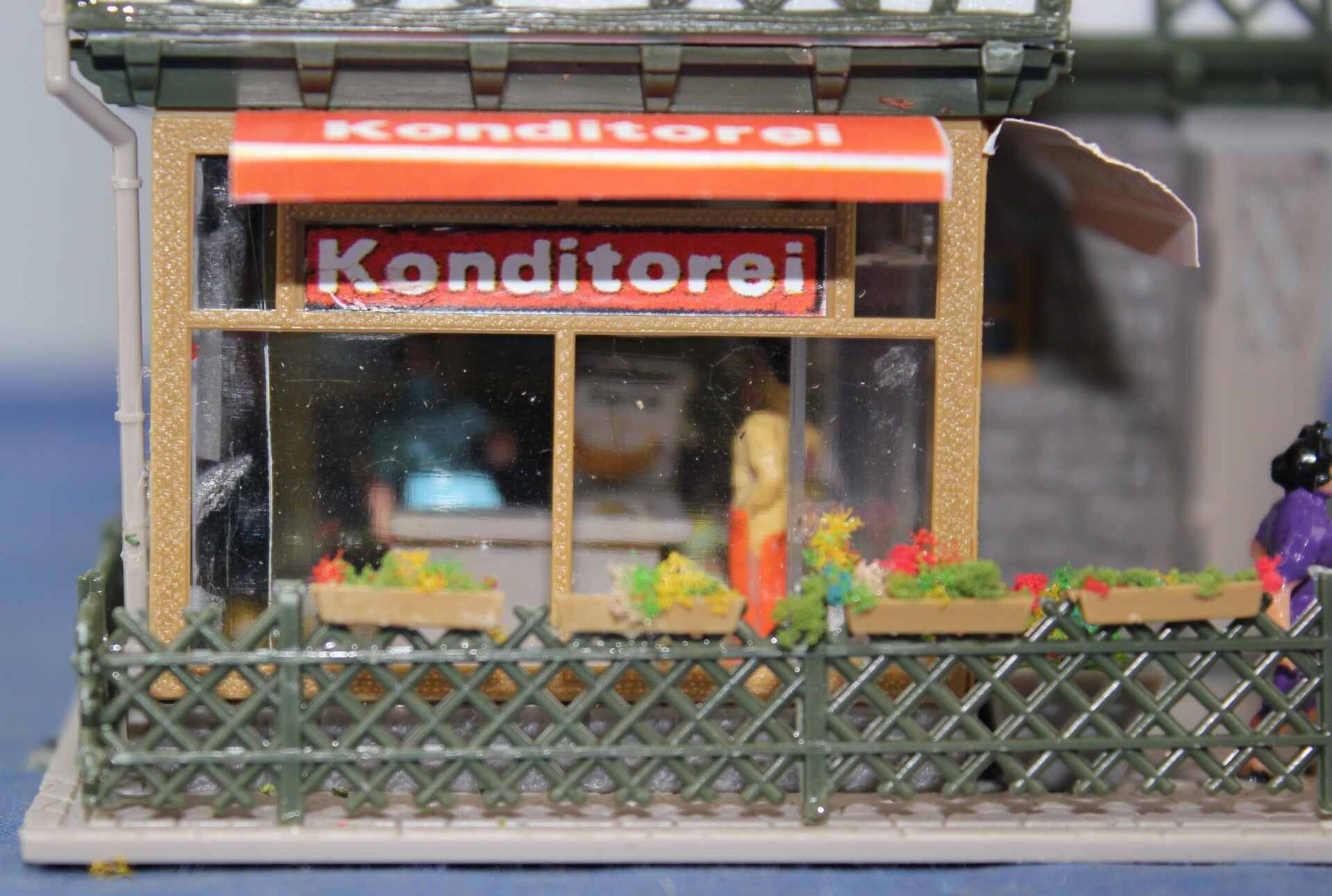 Fraai aangekleed en gedetailleerd gebouw met figuurtjes.