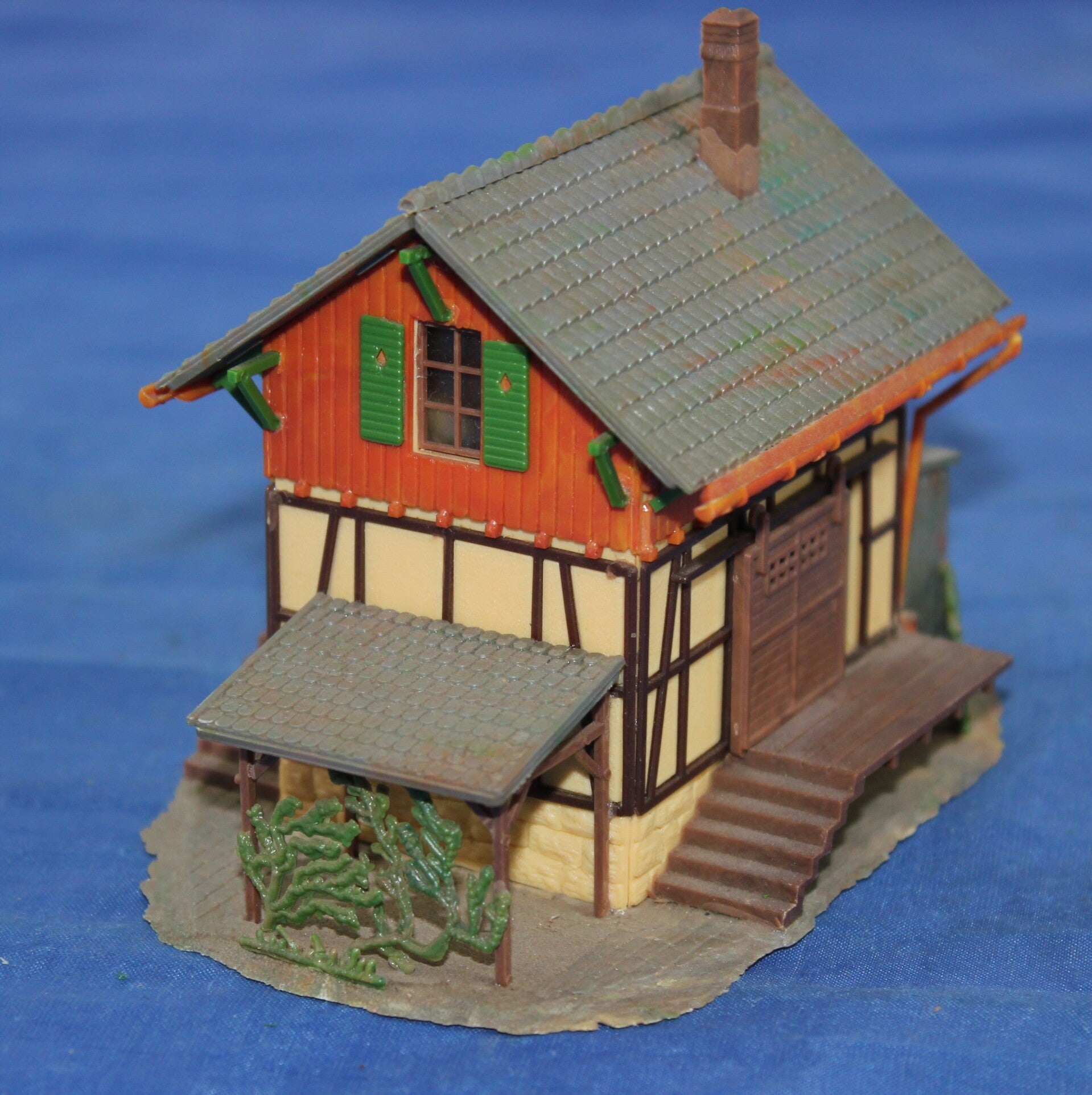 Fraai vakwerk gebouw met laadperrons, aanbouw en afdak.