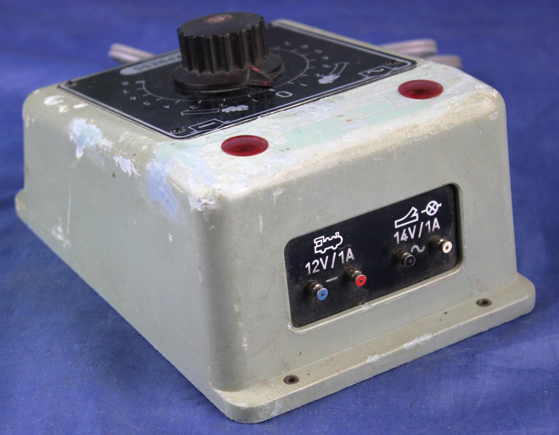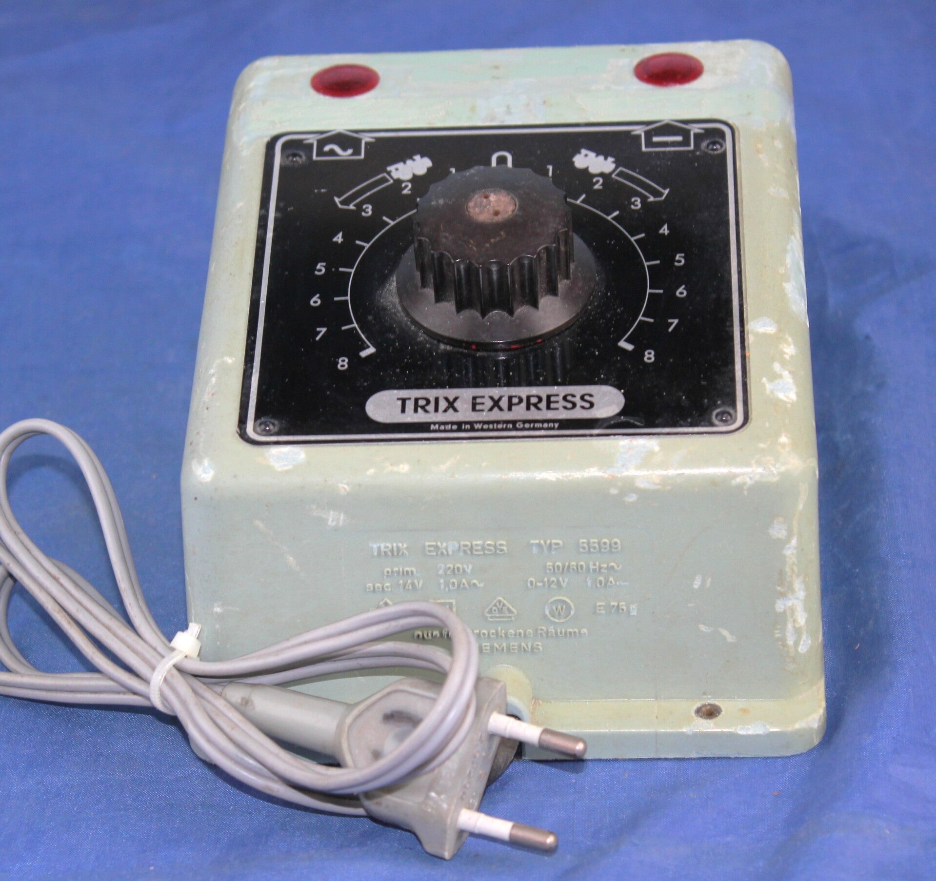 Regelbaar 0-12 Volt gelijkspanning, dus geschikt voor H0 en N spoorbanen met Trix, Fleischmann, Roco, Lima e.a.